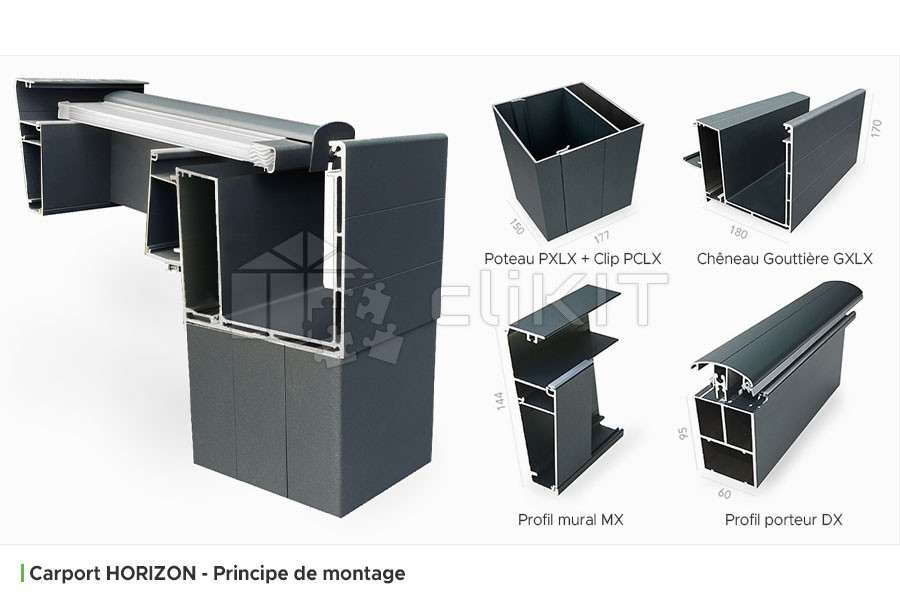 Notre équipe technique reste disponible et à votre écoute durant toute la phase du montage de votre carport. Vous remarquerez assez vite la simplicité de pose du système. Il est possible de réaliser le montage en quelques heures seulement. Votre carport CliKIT arrivera sous forme de kit contenant la structure de toit en aluminium, les éléments de toiture, les accessoires, ainsi que la notice de pose.