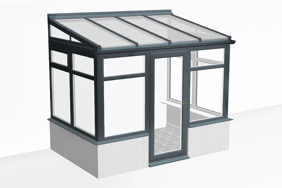 De base carré ou rectangulaire, les châssis fenêtres, assemblés et vissés sur une ossature aluminium, sont en PVC renforcé multichambres 70mm. La structure du toit est en aluminium et le capotage en PVC.