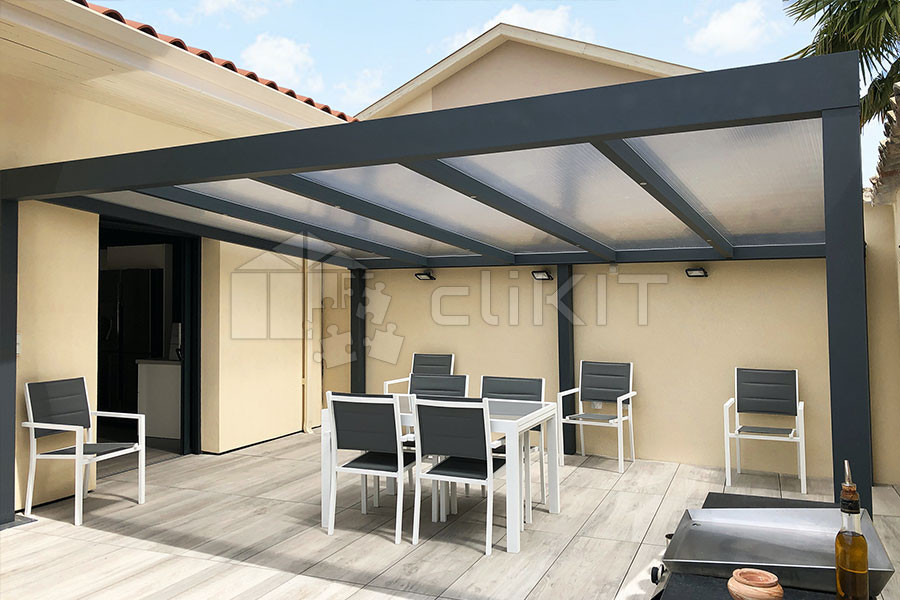 Version adossée sur mur d'appui fixeUne toiture polycarbonate plus résistante que le verre