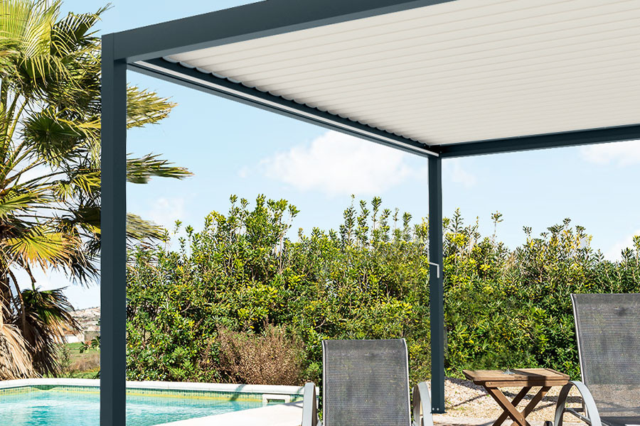 Pour profiter pleinement de votre espace de vie sans se soucier des conditions climatiques, la Pergola Bioclimatique SUNLITE innove avec ses lames orientables qui vous permette de passer du temps sur votre terrasse en toute saison.