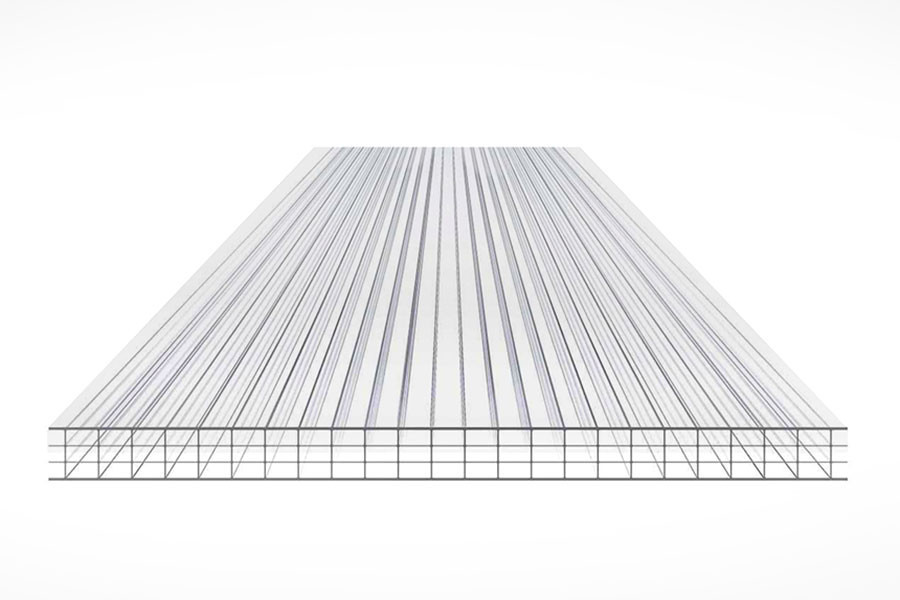 Le côté supérieur de la plaque est protégé des rayons UV afin de garantir sa solidité et ses caractéristiques de transmission lumineuse. Résistante aux impacts, isolante, légère et esthétique : la plaque 4P de 10mm possède de nombreux avantages par rapport à du vitrage. Grâce à sa structure, la plaque est très flexible et jusqu’à 250 fois plus résistante que le verre.