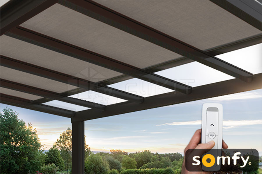 - Manoeuvre électrique assurée par motorisation radio SOMFY OREA WT, ou par motorisation télécommandée SOMFY SUNEA iO (en option)
