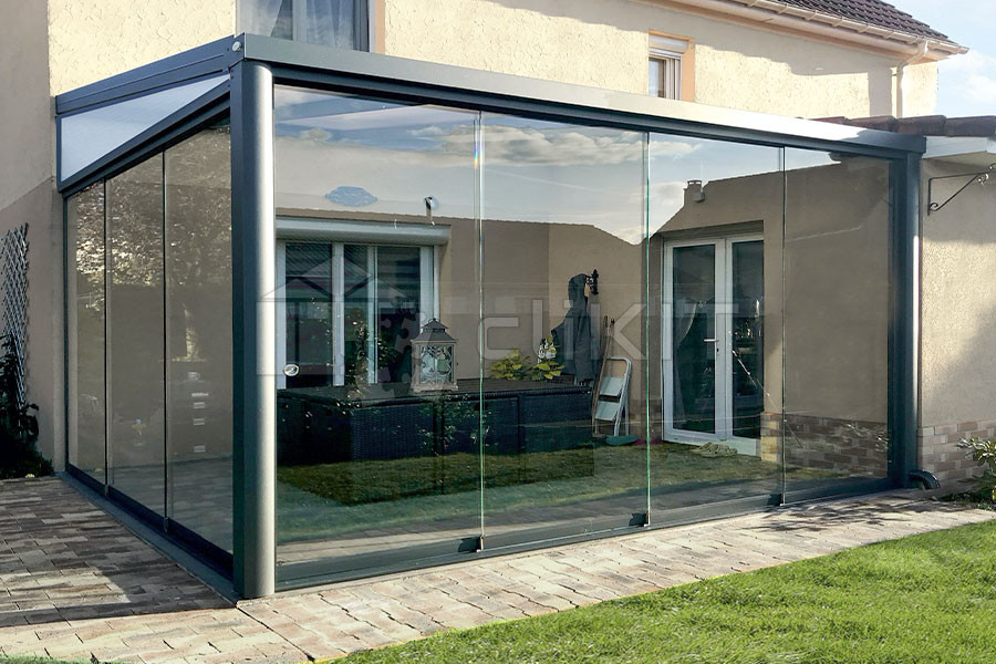 Notre équipe technique reste disponible et à votre écoute durant toute la phase du montage de votre jardin d'hiver. Vous remarquerez assez vite la simplicité de pose du système. Il est possible de réaliser le montage en quelques heures seulement. Votre Jardin d'Hiver CliKIT arrivera sous forme de kit contenant la structure de toit en aluminium, les éléments de toiture, les éléments de guidage, les panneaux de verre déjà équipé des roues de guidages, les accessoires, ainsi que les notices de pose.