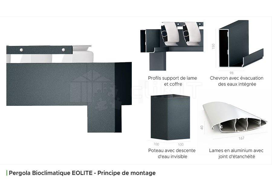 Photo du Principe de Montage de la Pergola Bioclimatique EOLITE