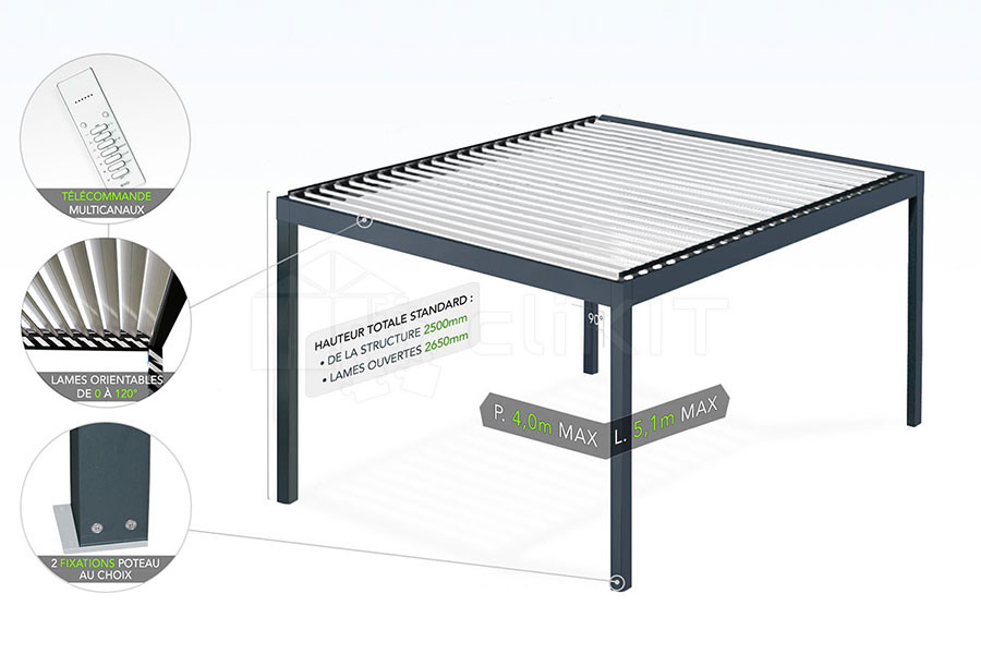 Schéma de la Pergola Bioclimatique EOLITE Autoportée